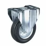 RUOTA GOMMA PIASTRA FISSA mm 160x40,0 piastra 135x100 Ruota gomma nera - Disco acciaio